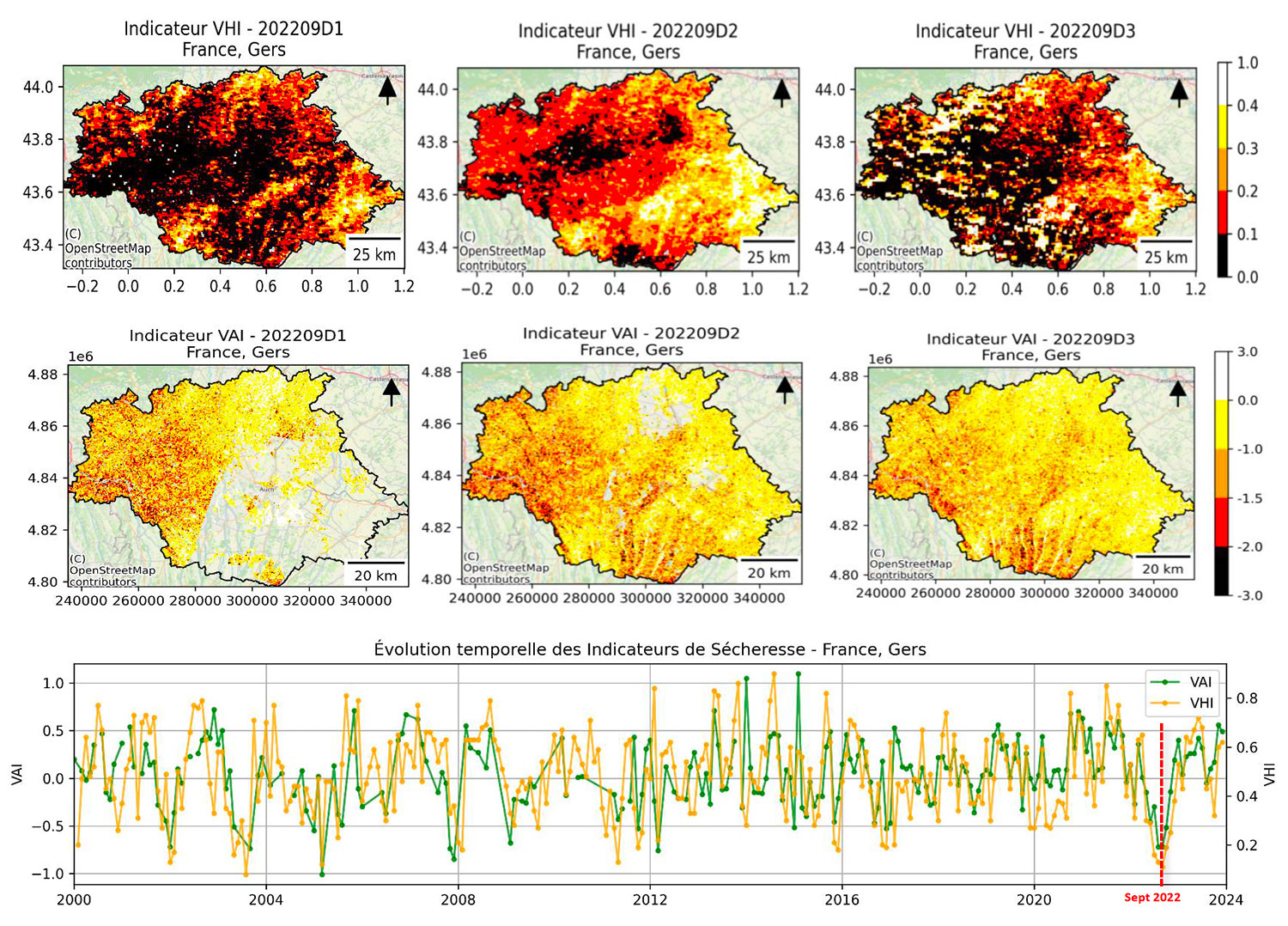 ► Map of VHI/VAI indicators in the Gers department (September 2022) © MEOSS / INSIGHT |