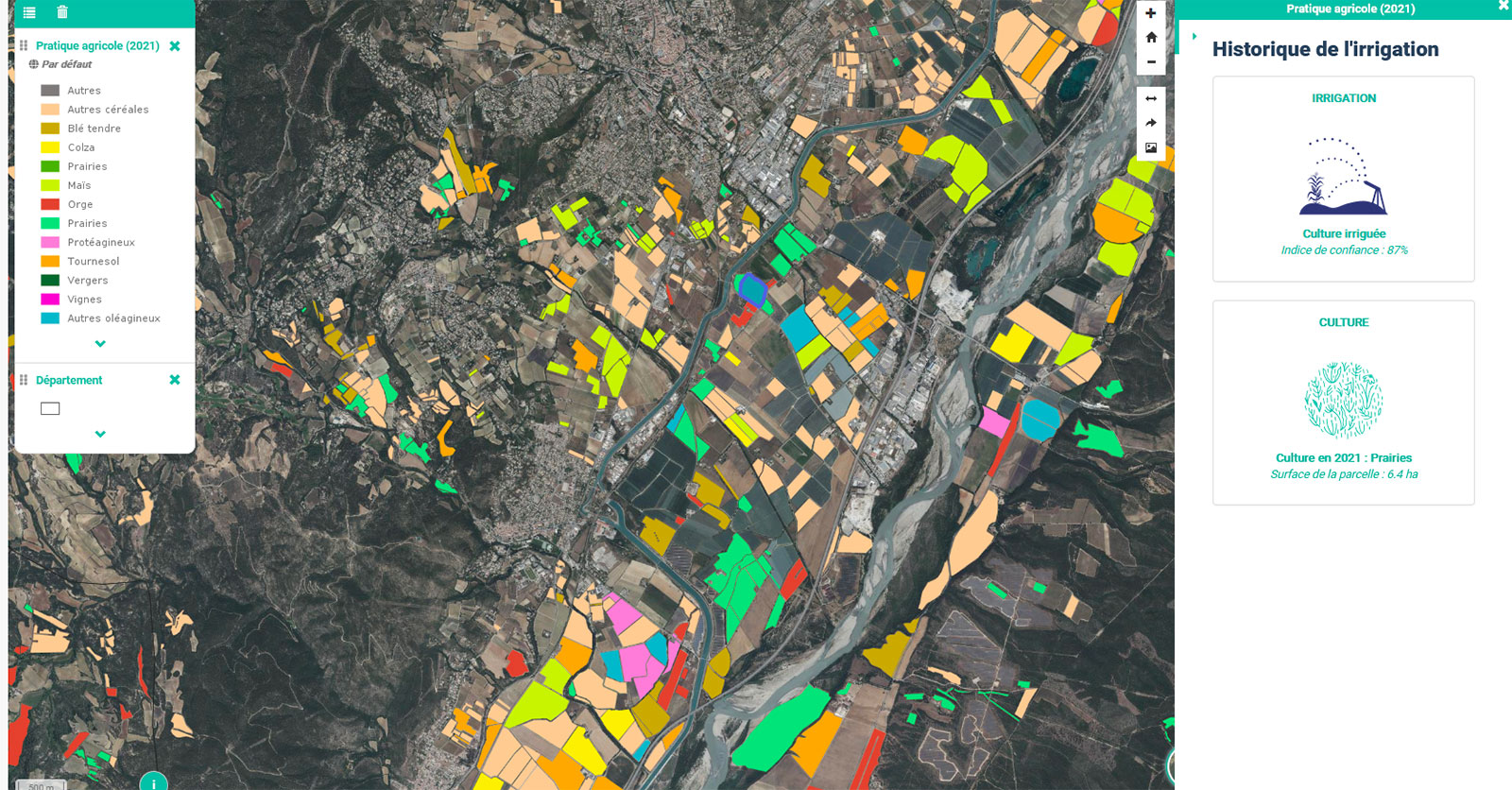 The project developed the EO4AgriWater tool, whose results are displayed on a web-based mapping platform accessible to the project's institutional partners (Chambers of Agriculture, water managers).