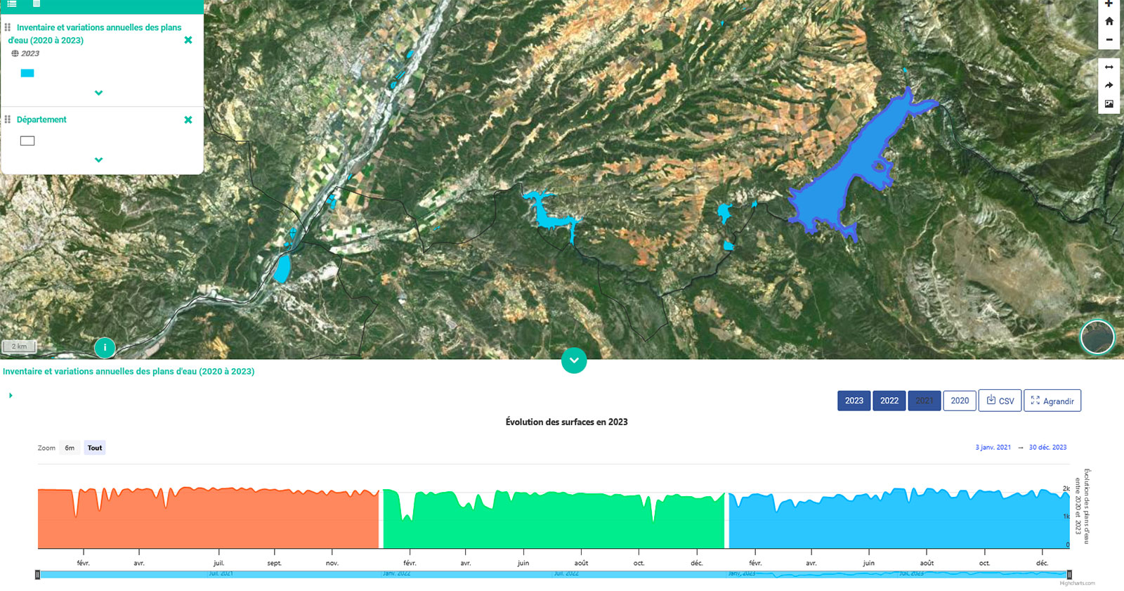 - WP4 : Indicators for monitoring water bodies: Identify and monitor changes in the surface area of water bodies using satellite data