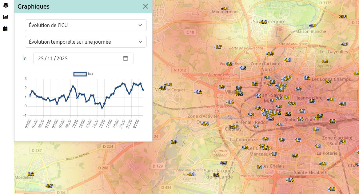 Projet terminéRéalisé conjointement entre le laboratoire CNRS LETG Rennes et l’entreprise Alkante, le projet ALTELYS a développé une infrastructure de données portant sur le suivi au plus proche du temps réel des températures urbaines. En libre accès et reproductible en tout lieu, la plateforme web urba-clim.com permet aux utilisateurs de consulter la température de l’air et la spatialisation de l’ilot de chaleur urbain ICU afin de mieux appréhender leurs territoires.