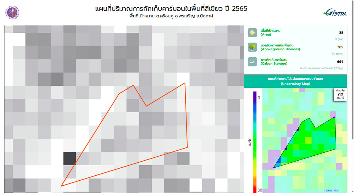 La plateforme fournit actuellement des données sur la biomasse aérienne (AGB) et les stocks de carbone pour la Thaïlande (2022) à différentes échelles, allant des parcelles individuelles aux régions administratives, y compris les sous-districts, les districts et les provinces. Les utilisateurs ont également la possibilité de télécharger des cartes au format .jpg. Un ensemble de données actualisé pour l'AGB et les stocks de carbone pour 2024 sera disponible d'ici la fin octobre 2025, avec des mises à jour prévues tous les deux ans (les prochaines sont prévues pour 2026 et 2028). Après 2028, les mises à jour passeront à une fréquence annuelle. Bien que la plateforme soit actuellement disponible en thaï, il est prévu de proposer une version en anglais d'ici 2026.