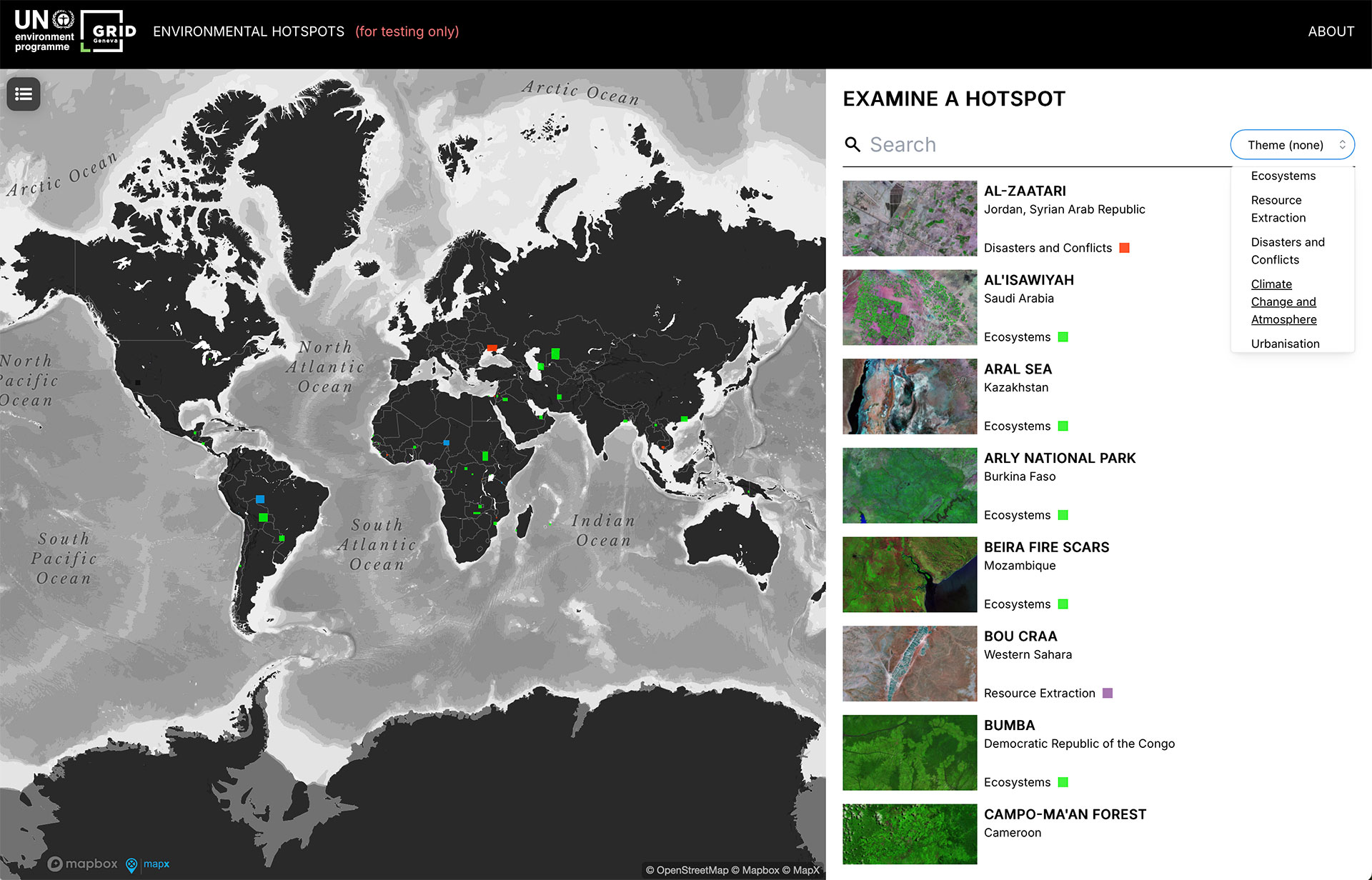👉 Après 12 mois de développement, le prototype de la plateforme compte plus de 150 sites dont on peut explorer les transformations des paysages des années 1980 à aujourd'hui : https://hotspots.unepgrid.ch.