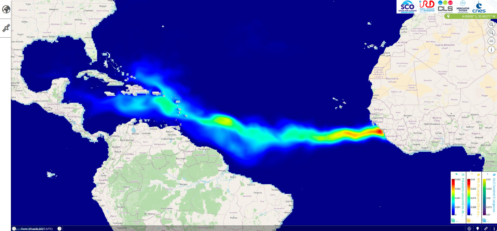Depuis 2018, CLS développe et exploite un système de suivi de la situation des sargasses en temps réel, basé sur plusieurs capteurs satellitaires. Le système produit des cartes quotidiennes de l'indice de présence des sargasses à une résolution de 300m. Des cartes d'une résolution de 20 m sont également produites tous les deux ou trois jours dans les zones côtières. Ces observations satellitaires couvrent l'ensemble de l'Atlantique tropical (5°S-30°N ; 10°E-100°W) et incluent des séries temporelles retraitées qui sont essentielles pour l'application des prévisions saisonnières.